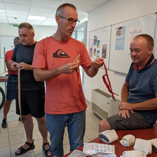 C'est sur la proposition et l'appui d'André CHALAYE, membre du club et ancien pompier que l'adjudant chef Emmanuel SEGURA, pompier professionnel à Lyon et formateur, est venu 2 fois à La Tour pour animer les formations.