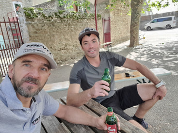 - Km57, arrivée à Soucieu 13h30, il n'y a plus grand monde. On débriefe avec Loïc autour d'une pauvre petite bière pas bien fraîche et un sandwich.