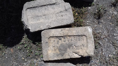 Des restes de structures de maisons sont là, il y a des briques et des débris de tuiles au sol.